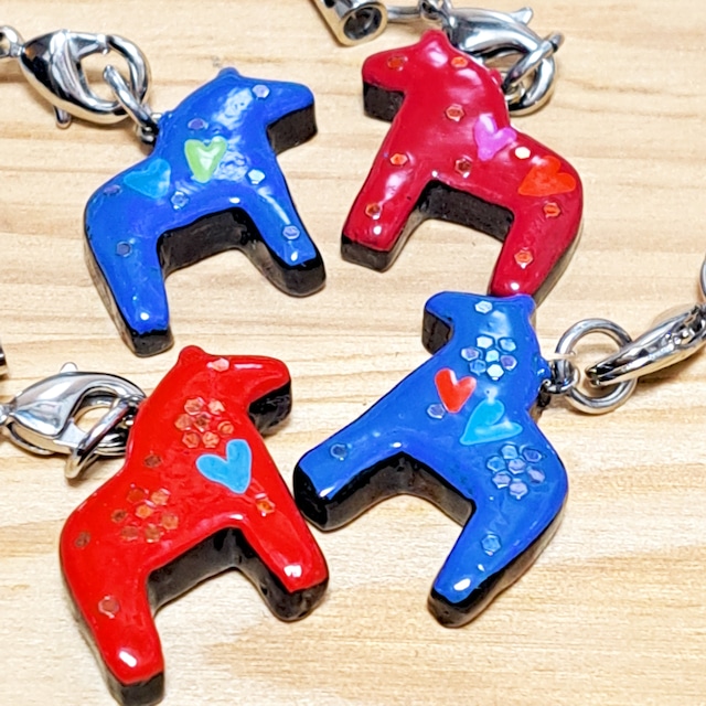 ダーラヘスト ミニ手描きストラップ 紐黒 【青 赤の2色 エナメルコーティング スウェーデン製】