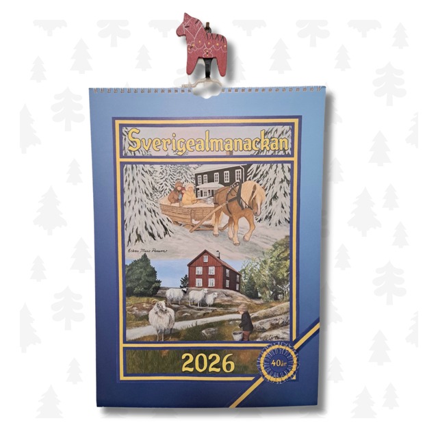 マリーさんのカレンダー 2026年版 Erkers Marie Persson Sverigealmanackan サイズ:42×29.6 センチ 1989年から 毎年ご好評をいただいている、 スウェーデンのカレンダー。 スウェーデン全土から、 12の地方を選び、 マリーさんが、 毎年描きおろしています。 ____________________ ※必ずお読みください! ◆こちらの品のお送りは、 「定型規格外郵便」での配送となります。 このお送り方法は、 追跡は出来ず、ポストへの投函となります。 (ポストに入らない場合は、お手渡しです。) またおひとりさま 1部かぎり とさせていただきます。 商品代金+送料は、全国一律 3,300円+660円=3,960円です。 ※壁掛け用フックは付属しておりませんので、 ご自身でご用意くださるよう、お願いいたします。 ご質問は、何なりとお寄せください。 ____________________ マリーさんは、 ストックホルム生まれ。 35年間にわたり、 スウェーデンの25地方を旅して、 各地で経験したり、 感銘を受けた風景や出来ごとを 描き続けています。 それを毎年のカレンダーにして、 私たちを楽しませてくれます。 当店も、30年余にわたり、 販売していますが、 この時期になると、 毎年どの地方の、どんな四季の風景が 見られるのか、ワクワクします。 さらに今年も、 娘さんのリンダLindaさんが描いた画が、加わっています。 カレンダー表面には各地方の花が描かれ、 日にちの横に書かれている文字は人の名前です。 スウェーデンにも、お誕生日以外に 自分の名前の書いてある日に、お祝いする習慣があります。 ちょっとしたプレゼントをしたり、 おめでとうと言ったり、かる~いお祝いだそうです。 裏面には、解説が、 スウェーデン語、英語、ドイツ語で 書かれています。 ご注意 ・月曜始まりです。 ・祝祭日は、スウェーデンのものとなります。 名前の日 カレンダーの日の横に、文字が書いてありますが、 これは、人の名前です。 ”Namnsdag” という 名前へのお祝い日。 スウェーデンでは、その名の人に花束をプレゼントしたり、 おめでとう!と言ったり、簡単なお祝いをします。 楽しい風習ですね。