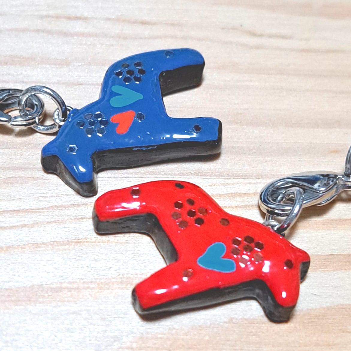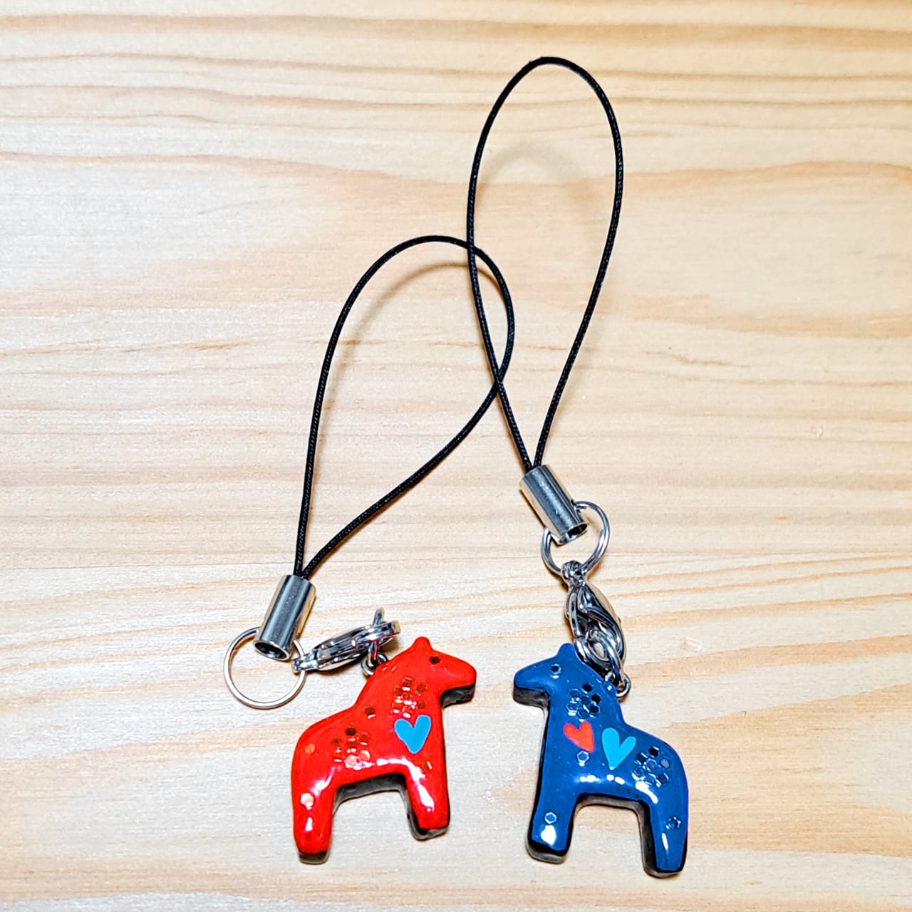 ダーラヘスト ミニ手描きストラップ 紐黒 【青 赤の2色 エナメルコーティング スウェーデン製】
