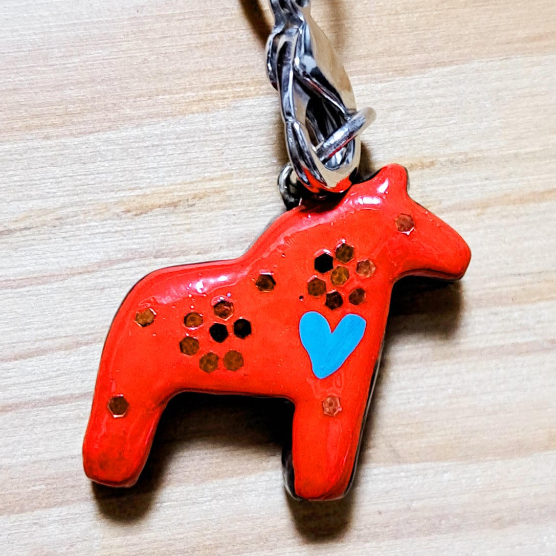 ダーラヘストが魅力的なストラップになりました。